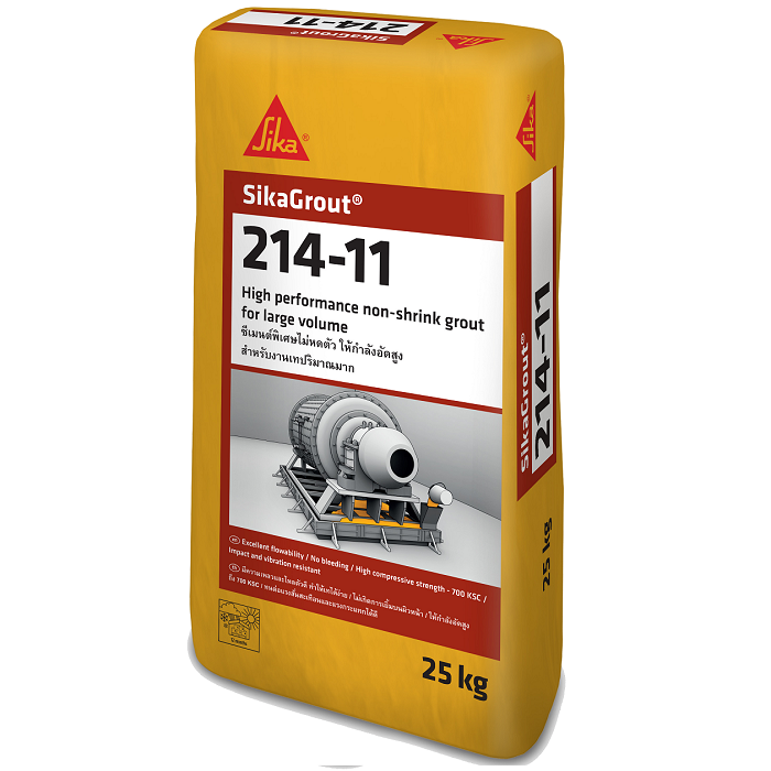 - SikaGrout 214 11 là vữa gốc xi măng tự san bằng, không co ngót dùng để rót vữa cho nền móng máy, định vị bu lông, các lỗ hổng và nơi sửa chữa cần cường độ cao