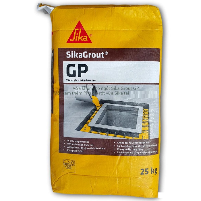 - Vữa rót gốc xi măng sikagrout Gp không co ngót có thể bơm được dùng cho các mục đích thông thường,thích hợp với điều kiện nhiệt độ môi trường khi thi công