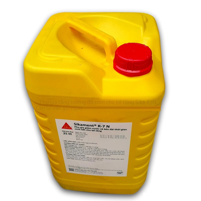 Phụ gia hóa dẻo gốc Lignosulfonat sử dụng trong sản xuất bê tông khối lớn và bê tông kết cấu có mác dưới 300 cần độ chảy cao, có độ dẻo nên tăng tính thi công, tăng cường độ cuối cùng bê tông. Sika R7 N được chế tạo ở quy mô công nghiệp và có chất lượng tốt. Phụ gia bê tông Sikament R7N đã công bố theo tiêu chuẩn cơ sở, ngành tại Việt Nam và phù hợp với tiêu chuẩn quốc tế ASTM C-494 loại D - phụ gia giảm nước và chậm ninh kết.