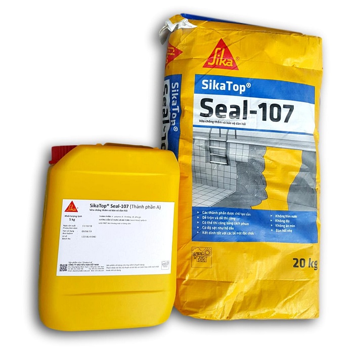 - Sikatop Seal 107 là vữa gốc xi măng polyme cải tiến 2 thành phần dùng để chống thấm bảo vệ đàn hồi bên trong và bên ngoài nhà, ngăn cản sự thấm nước