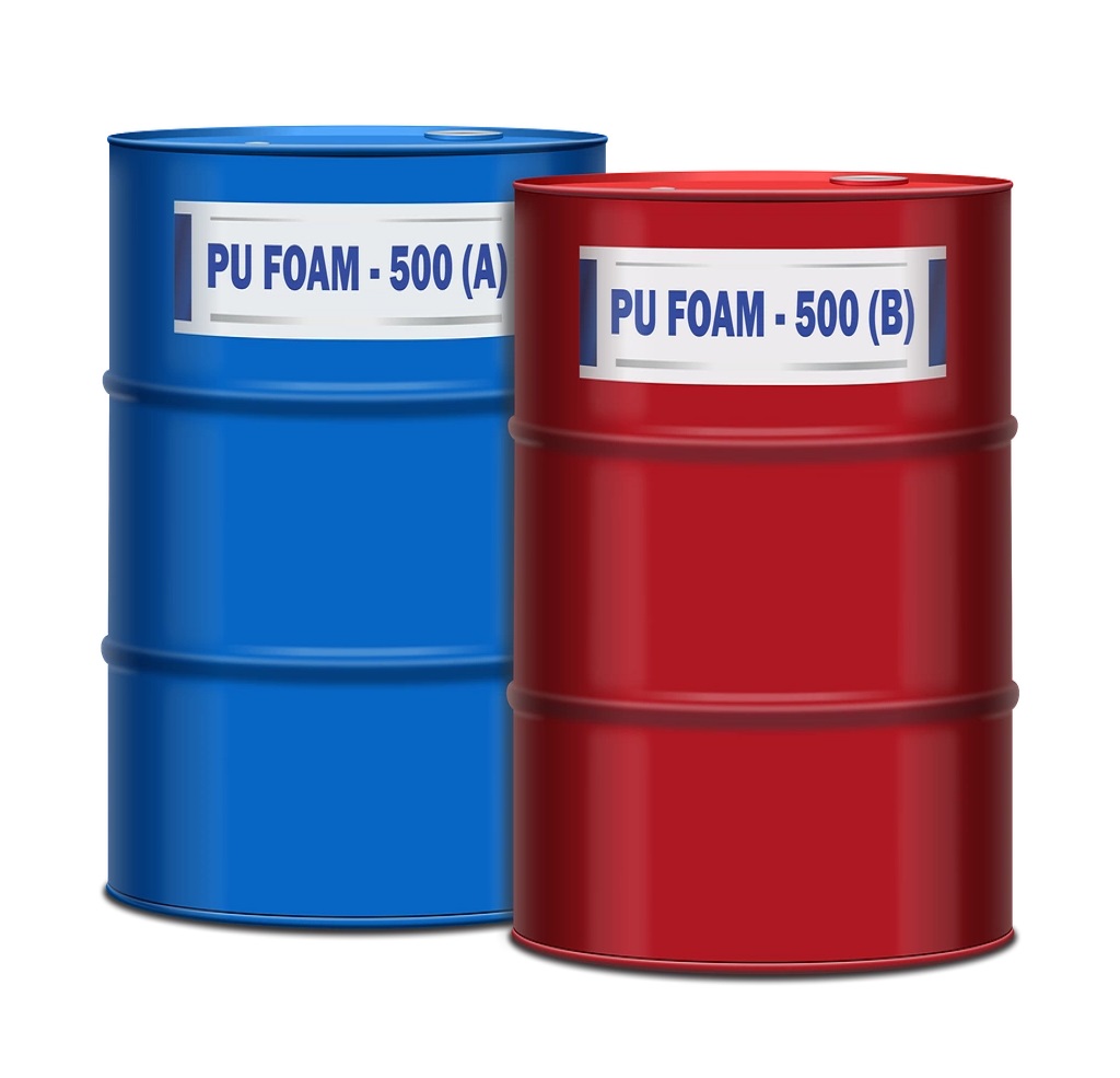 PU FOAM 500 là hợp chất giữa Isocyanate (chất đóng rắn) và Polyols cùng các phụ gia tạo bọt, xúc tác, chống cháy,...dùng máy trộn/phun chuyên dụng để tạo ra lớp xốp Polyurethane